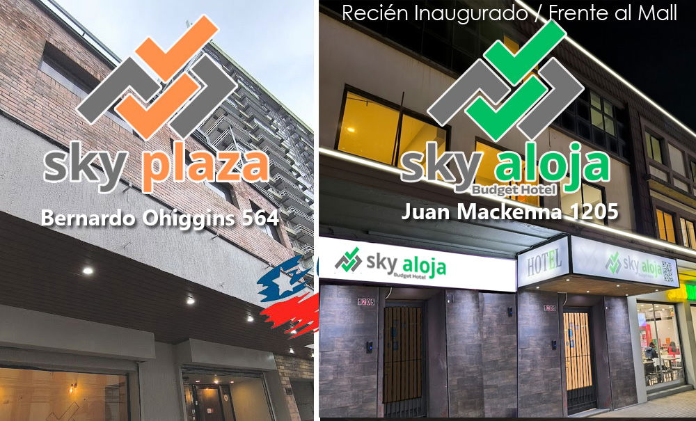 Dos direcciones, a pasos del centro de Osorno, los esperamos con precios de inauguración, y ahora Sky Aloja Hotel, frente al Mall de la ciudad.